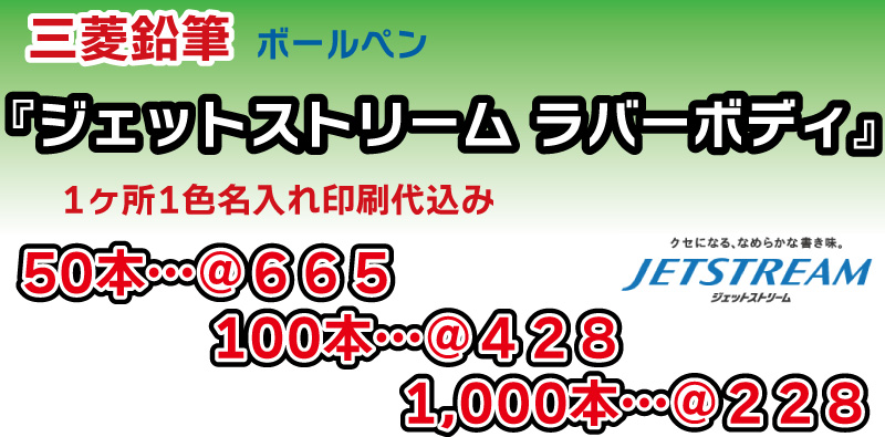 三菱鉛筆「ジェットストリーム ラバーボディ」ボールペン単価表(税抜)