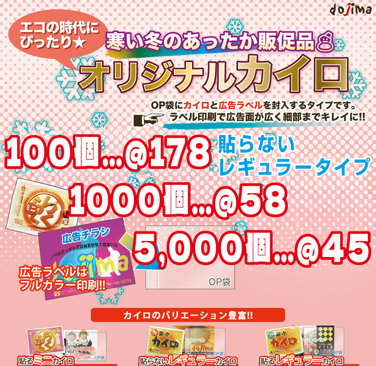 ●貼るタイプは単価+1円、ミニサイズ(最低ロット500)は単価ー1円です。
