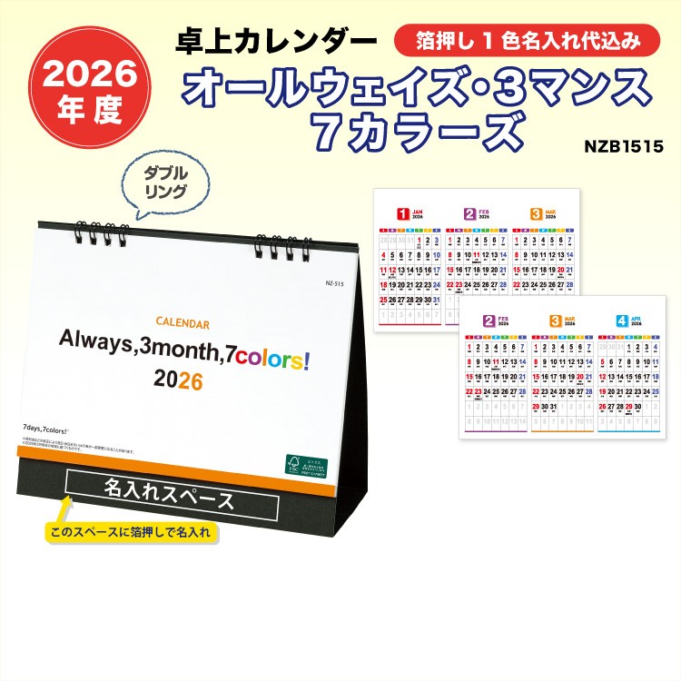 2026卓上 オールウェイズ・3マンス・7カラーズ