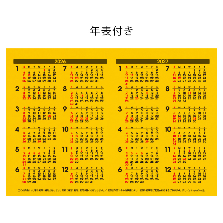 ・毎月「金運吉日」(天赦日・一粒万倍日・巳の日など)をアイコンで表示 ・黄色い台紙と金箔の八卦鏡デザインで縁起が良い 華やかさと実用性を兼ね備えたTD-288は、「開運カレンダー」の決定版ともいえる存在です。金運を意識する方への贈答品としてはもちろん、社員や取引先に配布する販促アイテムとしても喜ばれる一冊です。 |