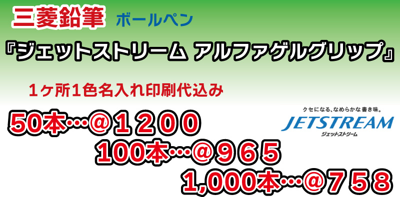 三菱鉛筆「ジェットストリーム アルファゲルグリップ」ボールペン単価表(税抜)