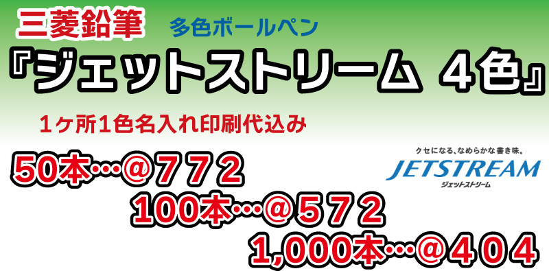 三菱鉛筆「ジェットストリーム」4色ボールペン単価表(税抜)