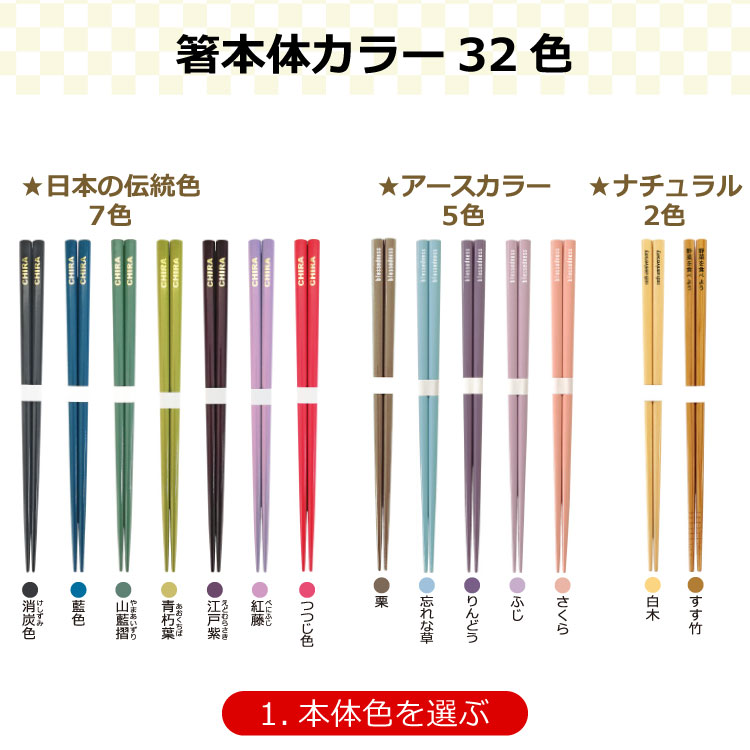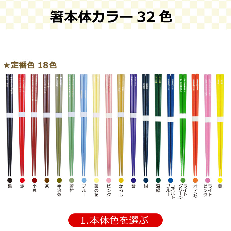 国産太角箸 オリジナル名入れ 本体32色 |