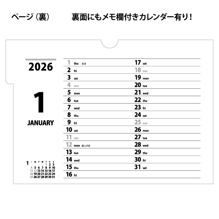 ![]() [印刷見本] 左から 白色 金色 銀色 ※2025年の画像を入れていますが、実際は2026年のカレンダーになります。