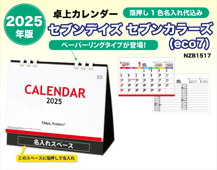 2025 セブンデイズセブンカラーズ(eco7) 名入れカレンダーの堂島広告