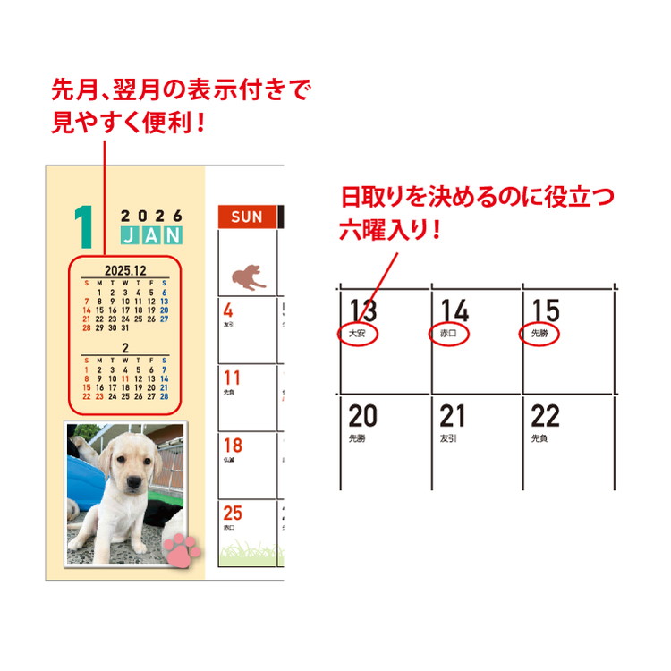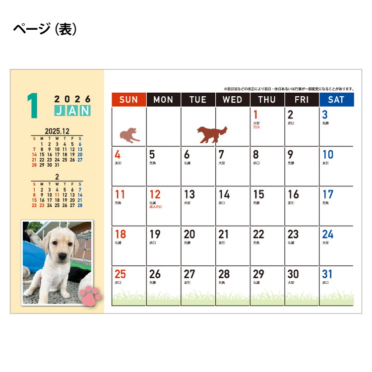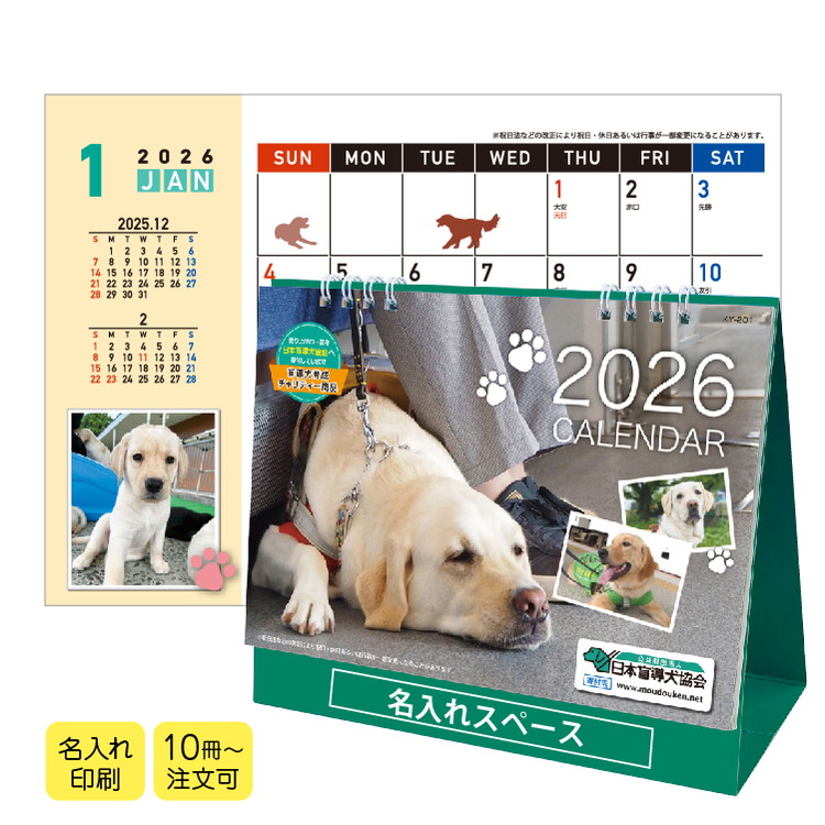 2026卓上 日本盲導犬協会カレンダー 名入れカレンダーの堂島広告![]() ![]() 日本盲導犬協会カレンダー ![]() ページ(表) ![]() ページ(裏) ![]() 見やすい ![]() 仕様 ![]() 年表入り ![]() 印刷色 ![]() フォント見本 ![]() 名入れ文字数 ![]() 梱包