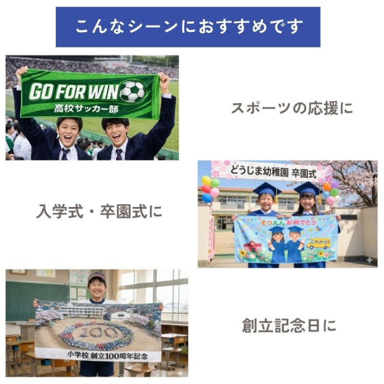 | こんな用途に! 記念品・スポーツイベント・チームタオル・ 応援タオル・学祭・ノベルティグッズ |