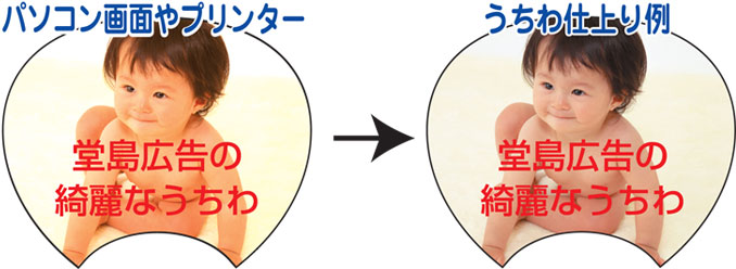 うちわの縁ぎりぎりに文字を入れるデザインは避けて下さい。8ミリ以上内側に入れて下さい。
