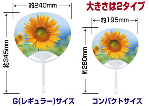 ●最低ロット100本、20,000本超の場合は別途御見積りいたします。 ●オリジナルポリうちわレギュラーサイズ:タテ345×ヨコ240mm ●オリジナルポリうちわコンパクトサイズ:タテ280×ヨコ195mm ●素材 PP